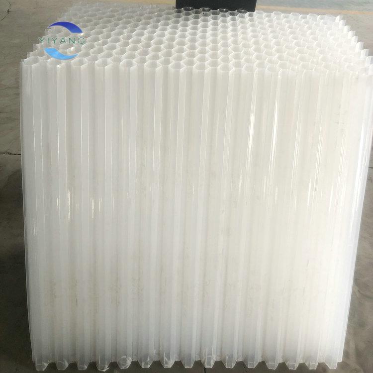 污水處理沉淀池中通過使用蜂窩斜管填料,進(jìn)行助沉助降,除砂沉淀,本產(chǎn)品材質(zhì)為PP聚丙烯,采用機(jī)械設(shè)備壓制而成,