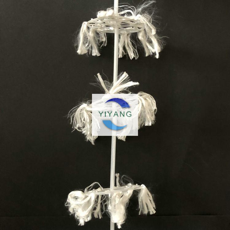 組合式填料是以塑料環(huán)作為依托骨架,負(fù)載著維綸醛化絲,維綸絲緊固在塑料環(huán)上,懸掛在污水池中可以均勻的分布在水中,易于生物掛膜,也易于換膜,對(duì)污水濃度的適應(yīng)性好。組合式填料塑料環(huán)周?chē)鷫褐?束醛化絲均勻分布,且較為牢固,在強(qiáng)大的曝氣湍流的情況下,仍然可以穩(wěn)定使用。組合式填料型號(hào)有φ150/180/200mm三種,填料的片間距可以加工8公分、10公分兩種,有效長(zhǎng)度可以根據(jù)污水處理池子的高度進(jìn)行設(shè)計(jì)加工。