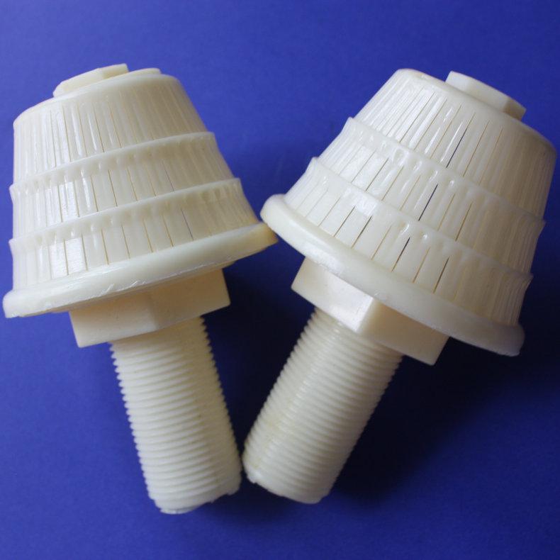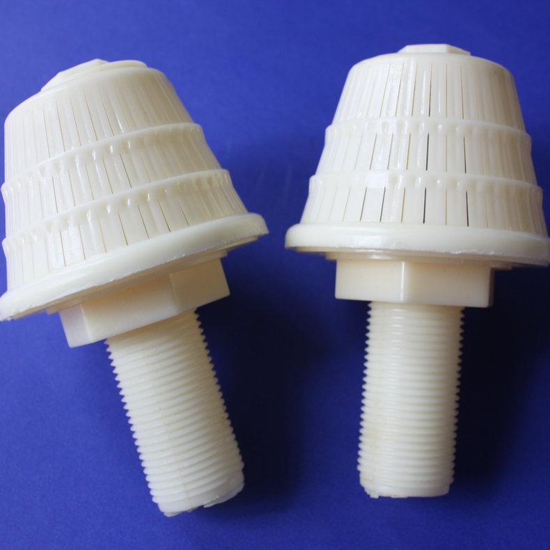 濾水帽又叫做排水帽、濾頭等,產品材質為ABS,**過程主要是注塑機中的產品磨具進行注塑加工成型制得,本產品主要用于水處理過濾系統中,作用為氣水反沖洗,主要應用在水處理過濾池、過濾罐、過濾器中,過濾層介質濾料有鵝卵石濾料、石英砂濾料、無煙煤濾料、活性炭濾料、樹脂濾料等。濾水帽、排水帽產品價格低廉,更換操作簡便。